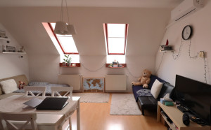 - Amerikai-konyhás nappali + hálószoba, kamra, közlekedő, fürdőszoba, WC