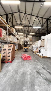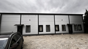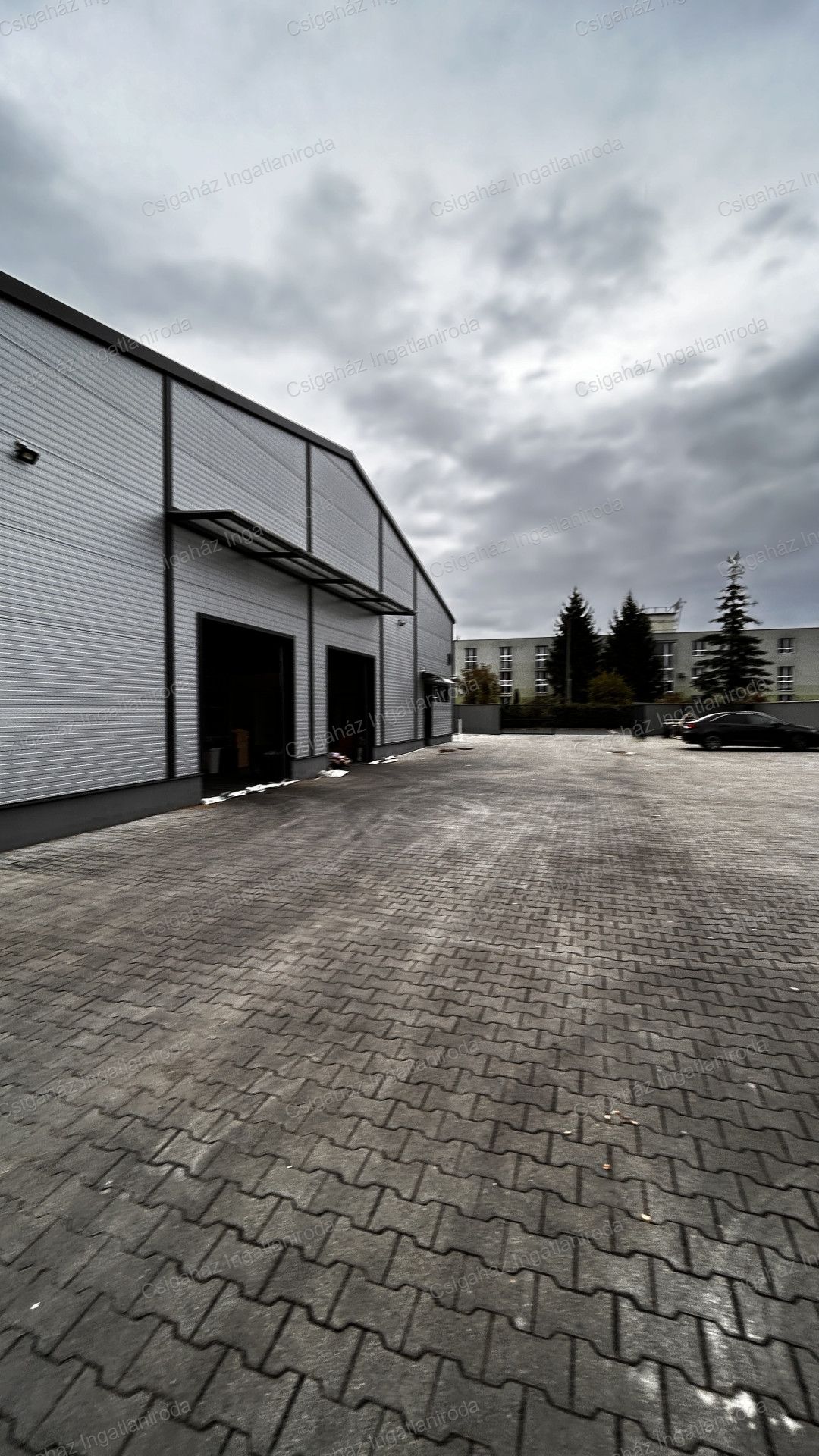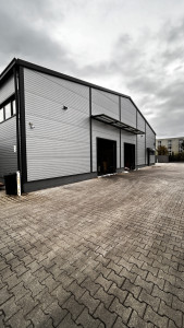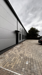 500 m²-es csarnok: Tartalmaz egy 100 m²-es fűthető irodahelyiséget szociális blokkokkal, fűtés elektromos panellel biztosítva. A csarnok nagy teherbírású ipari padlóval rendelkezik, és ipari kamerával és éjszakai világítással felszerelt. A csarnok belmagassága 5-6 m, a maximális tárolási magasság közel 5 m. Bérleti díj: 600.000 Ft/hó + rezsi.